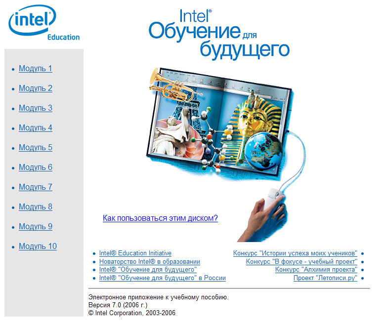 2006 г. (лето) - верстка электронного приложения (CD версия 7.0) к переизданию учебника Программы Intel® "Обучение для будущего" в России.