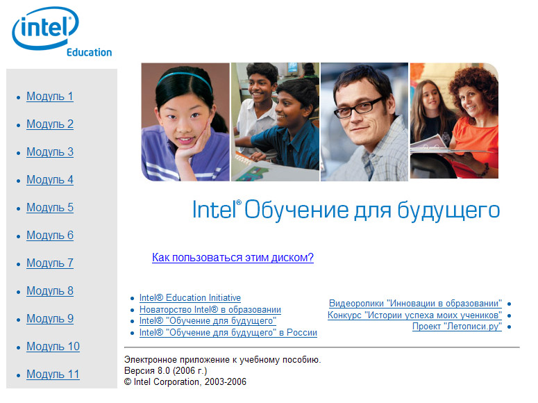 2006 г. (ноябрь) - верстка электронного приложения (CD версия 8.0) к переизданию учебника Программы Intel® "Обучение для будущего" в России.